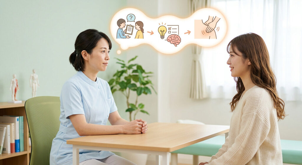 👉 筋肉(西洋医学)だけでなく、体全体のバランス(東洋医学)も見ます。